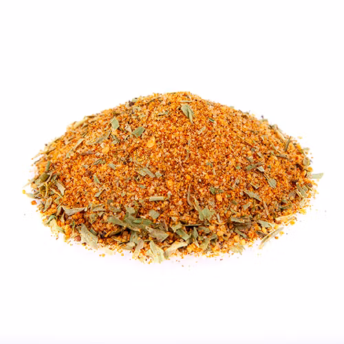 Ingredienser: Paprika, peppar, örter, salt, senap, veg. buljong, lök, morot, citronsyra, socker, kryddextrakt (apelsin), klumpförebyggande medel E551 = kiseldioxin, veg. olja