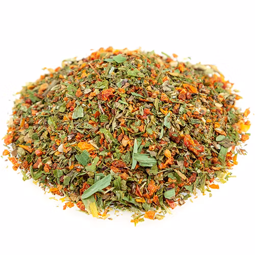 Ingredienser: Tomat, oregano, vitlök, gräslök, ramslök, persilja, gul lök, basilika, dragon, timjan, paprika, havssalt, purjolök